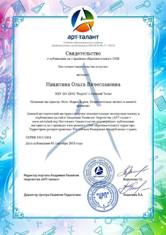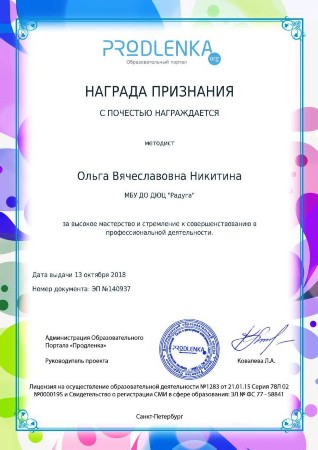 Диплом за высокое мастерство и стремление к совершенствованию в профессиональной деятельности